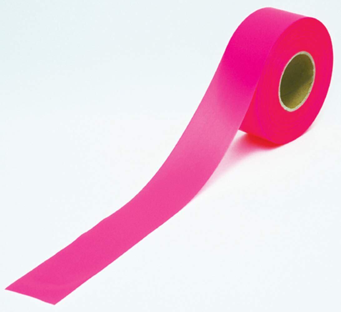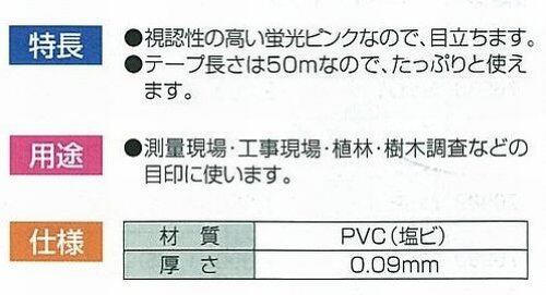 ●測量現場、樹木調査などで目印として使用するマーキングテープ。 ●視認性の高い蛍光色の標識用テープです。