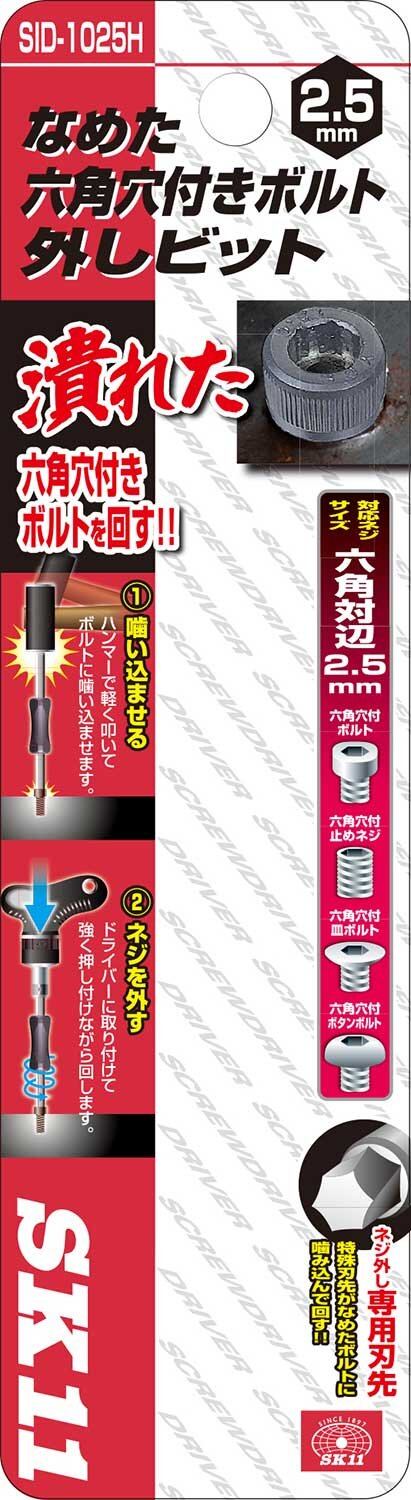 SK11(エスケー11) なめた六角穴付ボルト外しビット 対応ネジサイズ六角対辺2.5mm SID-1025H