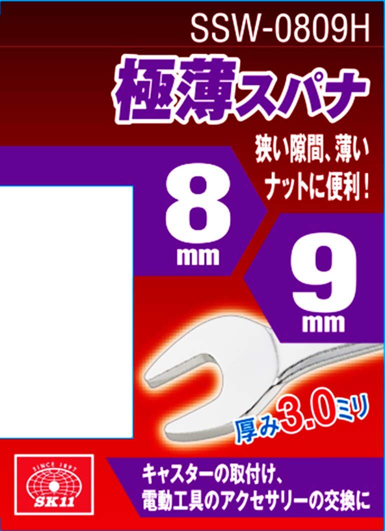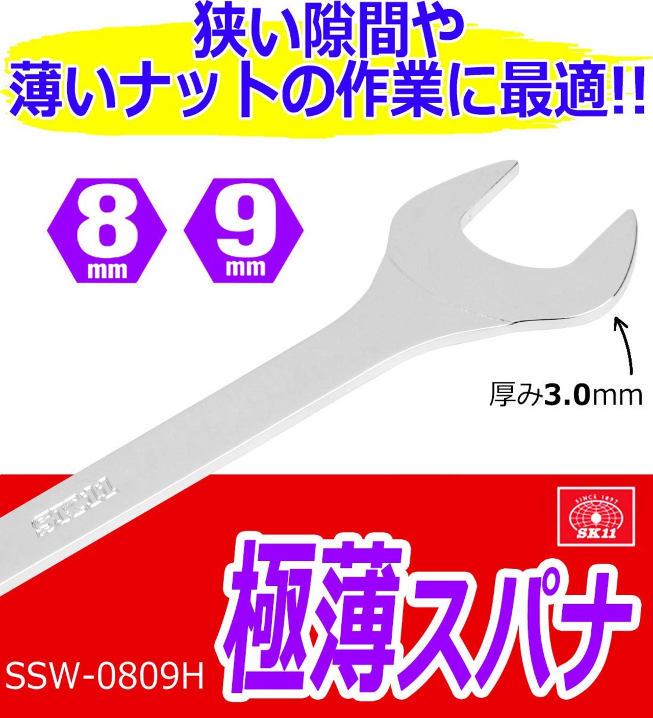 SK11(エスケー11) 極薄スパナ 8mm×9mm SSW-0809H 厚さ3.0mm