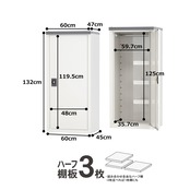 【サイズ】外寸:幅60×奥行47(天板以外は45)×高さ132cm。 内寸:幅59.7×奥行35.7×高さ125cm。 有効開口部:幅48×高さ119.5cm。