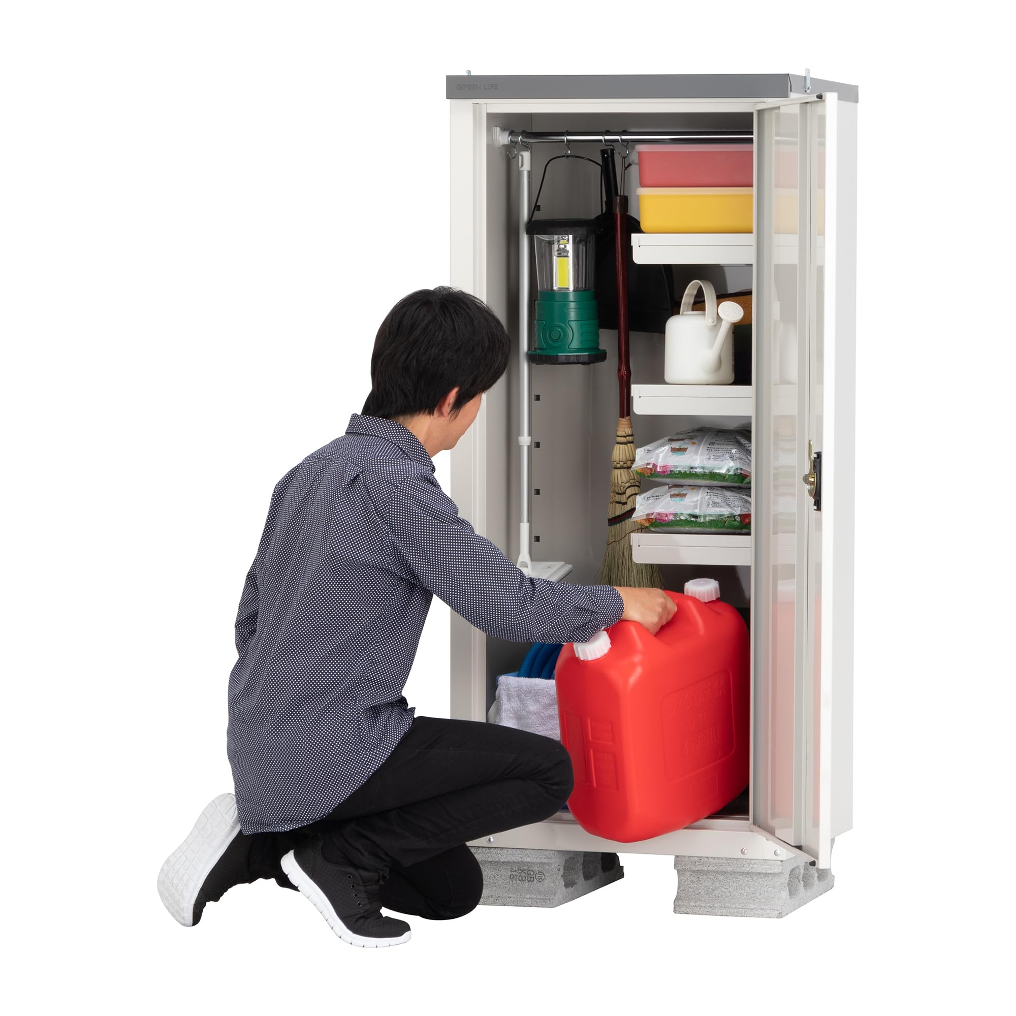 軒下やベランダ等少スペースを有効に活用できる小型市収納庫です。