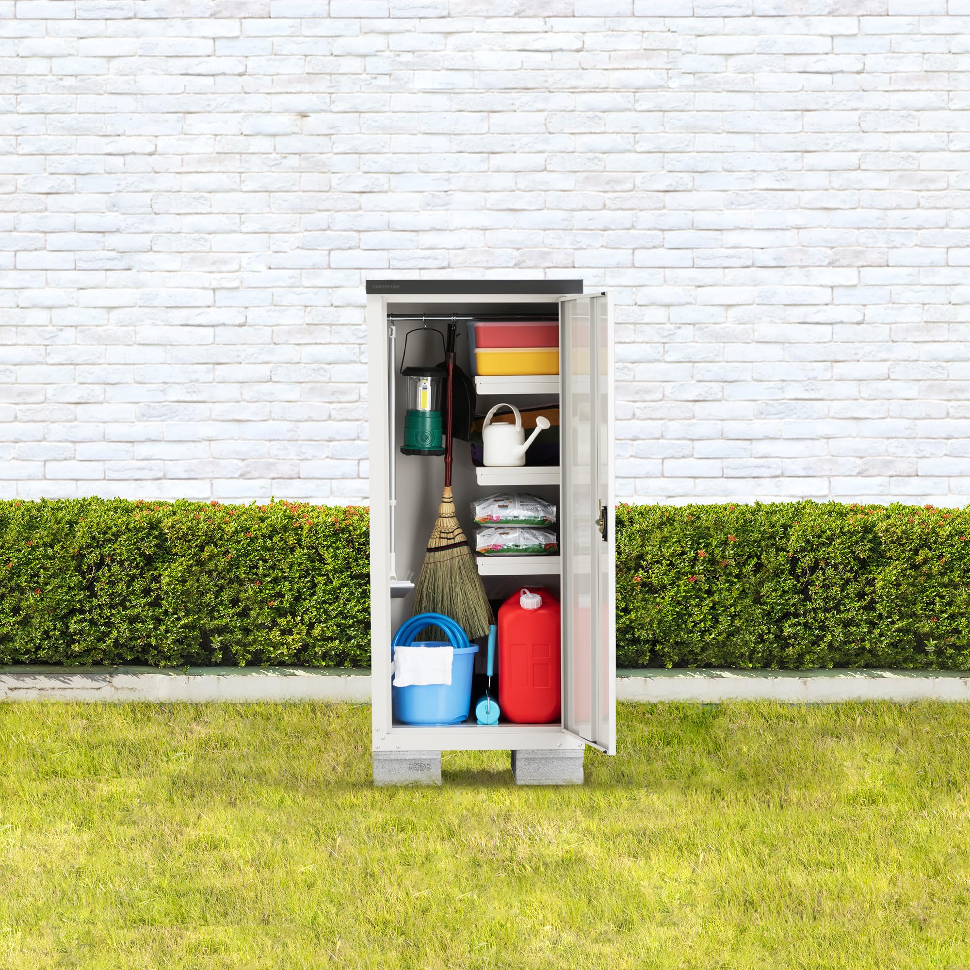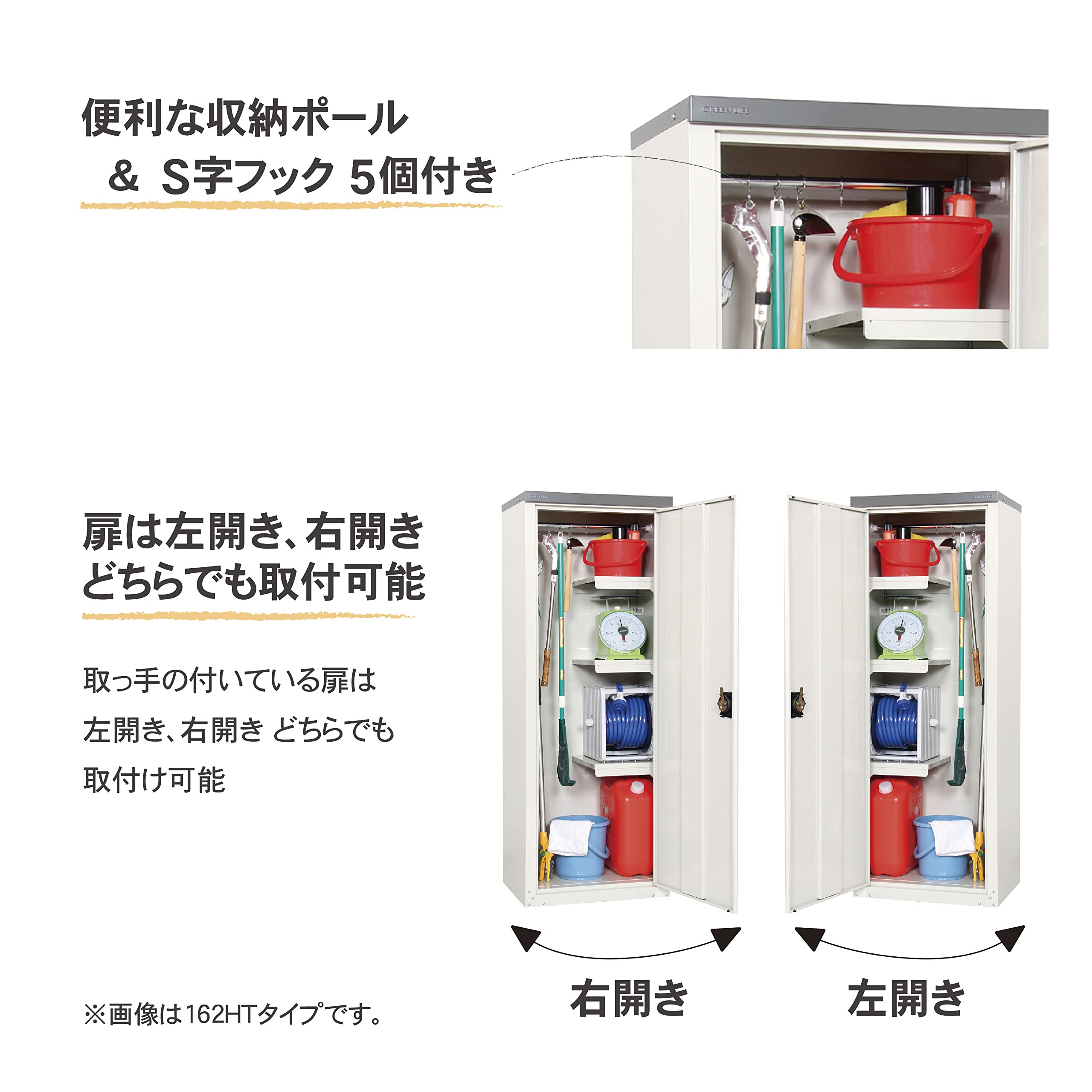 グリーンライフ 物置 収納庫 屋外 大型 【日本製】ハーフ 棚板3枚・鍵付き・収納ポール、S字フック付き・扉式(幅60×奥行47×高さ132cm)ライトグレー 錆に強い 調整可能な可動棚 TBJ-132HT