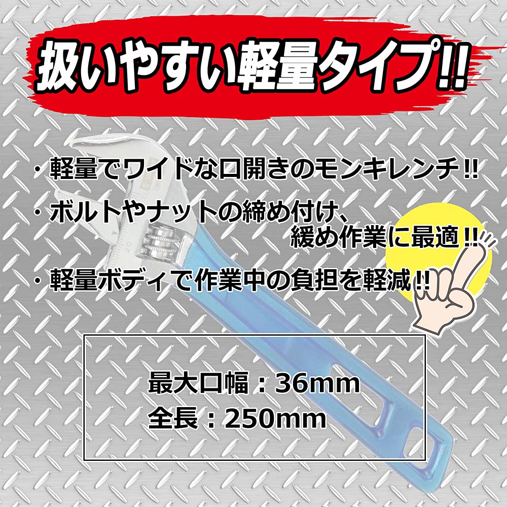 軽量でワイドな口開きのモンキレンチ