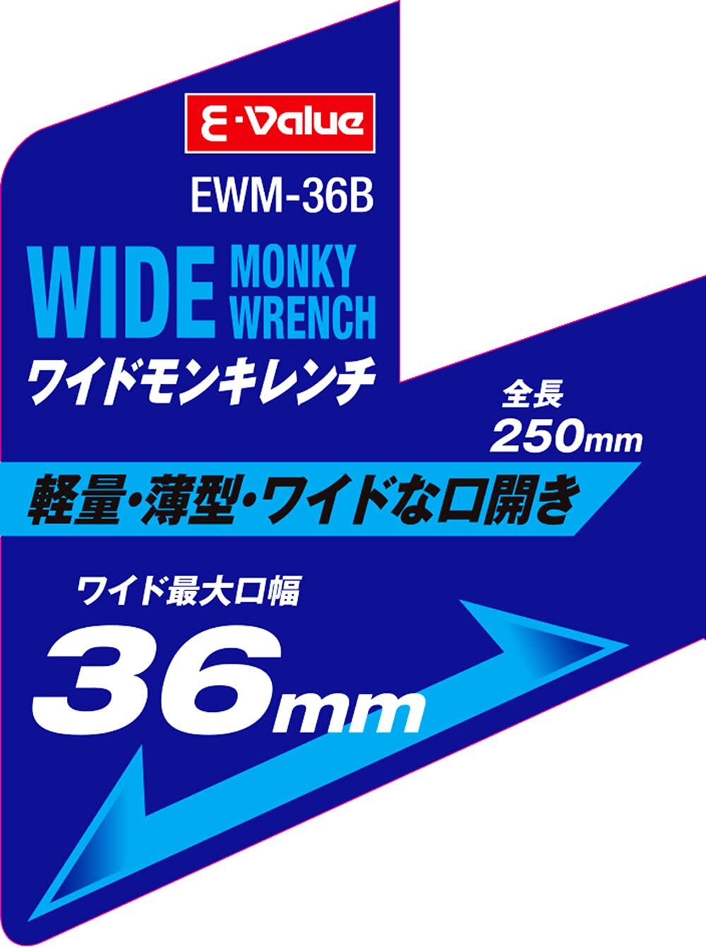 イーバリュー(E-Value) ワイドモンキレンチ 全長250mm 最大口幅36mm EWM-36B