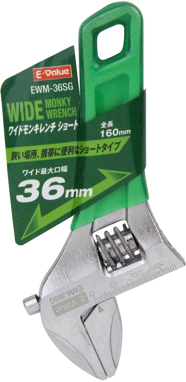 イーバリュー(E-Value) ショートワイドモンキレンチ 全長160mm 口幅36mm EWM-36SG