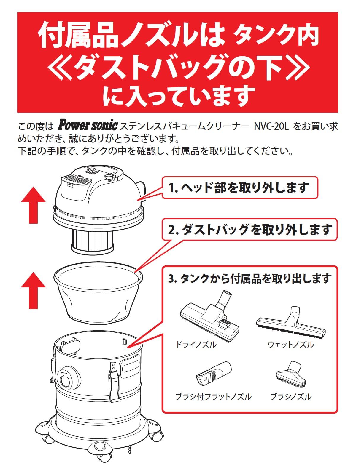 【オンライン限定品】パオック(PAOCK) ステンレス バキュームクリーナー NVC-20L 乾湿両用 20L コード自動巻取付