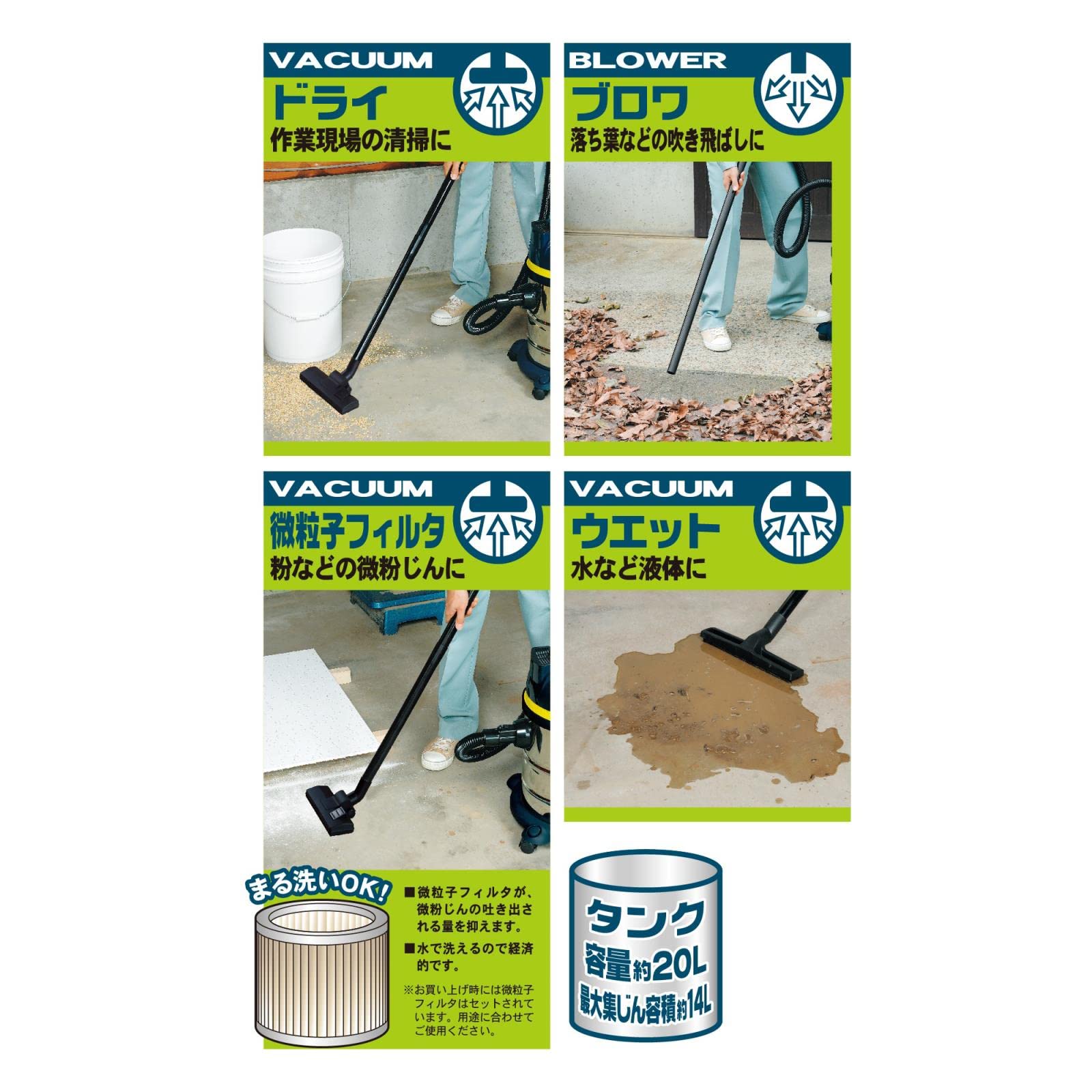 タンク容量(L):20(最大集じん容積:乾湿 約14) / 電源コード長(m):4