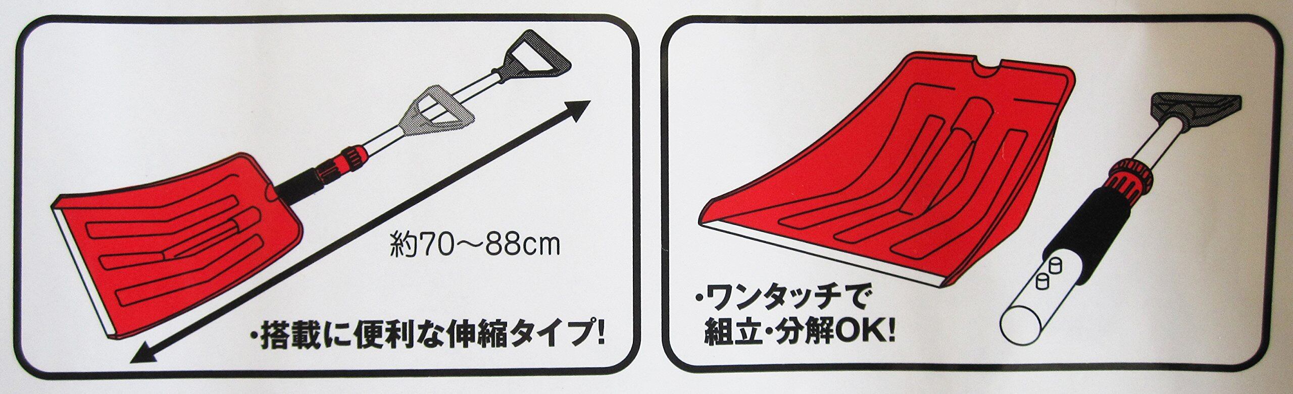 長さの調節が簡単で、トランクや車内にコンパクトに収納・分解・組立も簡単。玄関前や駐車場の除雪にも使える。