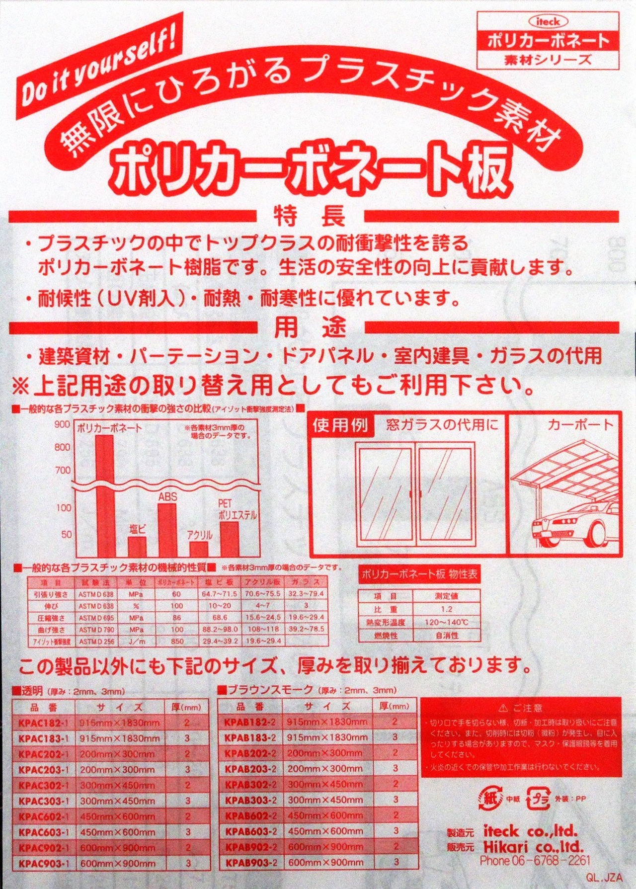 仕様:ポリカーボネート樹脂板(UV剤入)(中国製)