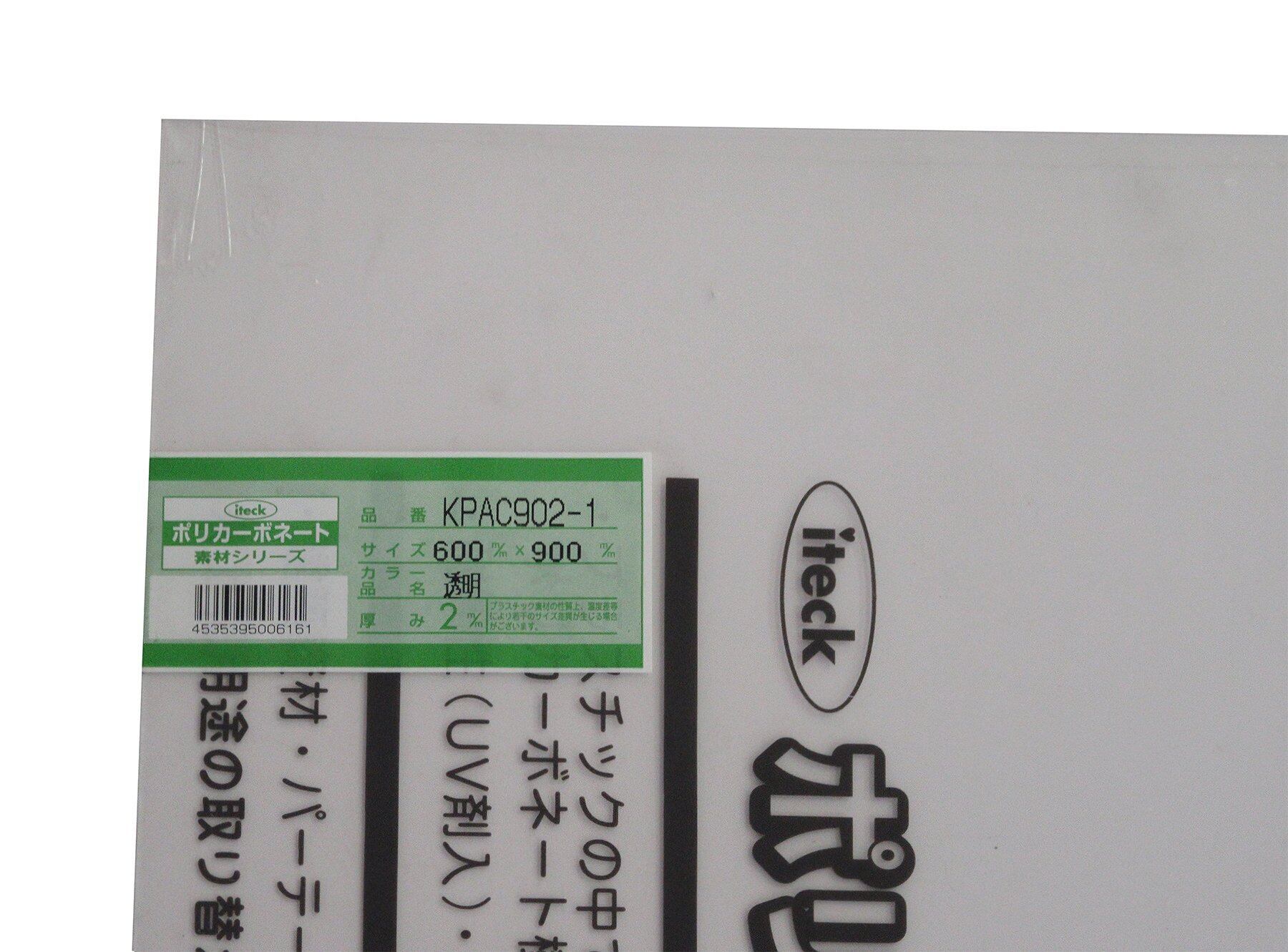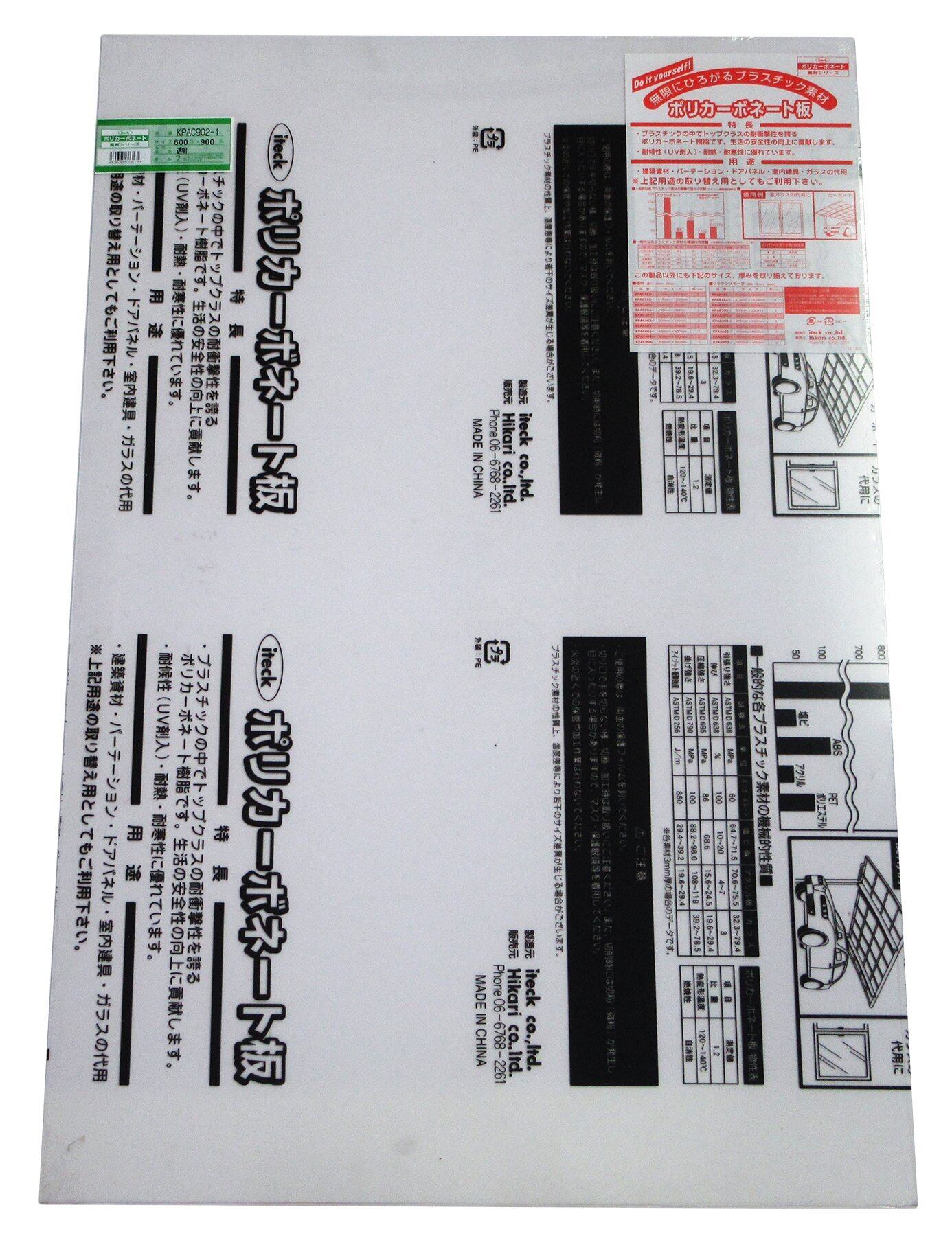 光 ポリカーボネート樹脂板(UV剤入) 透明 600×900×2mm 00869093-1 KPAC902-1