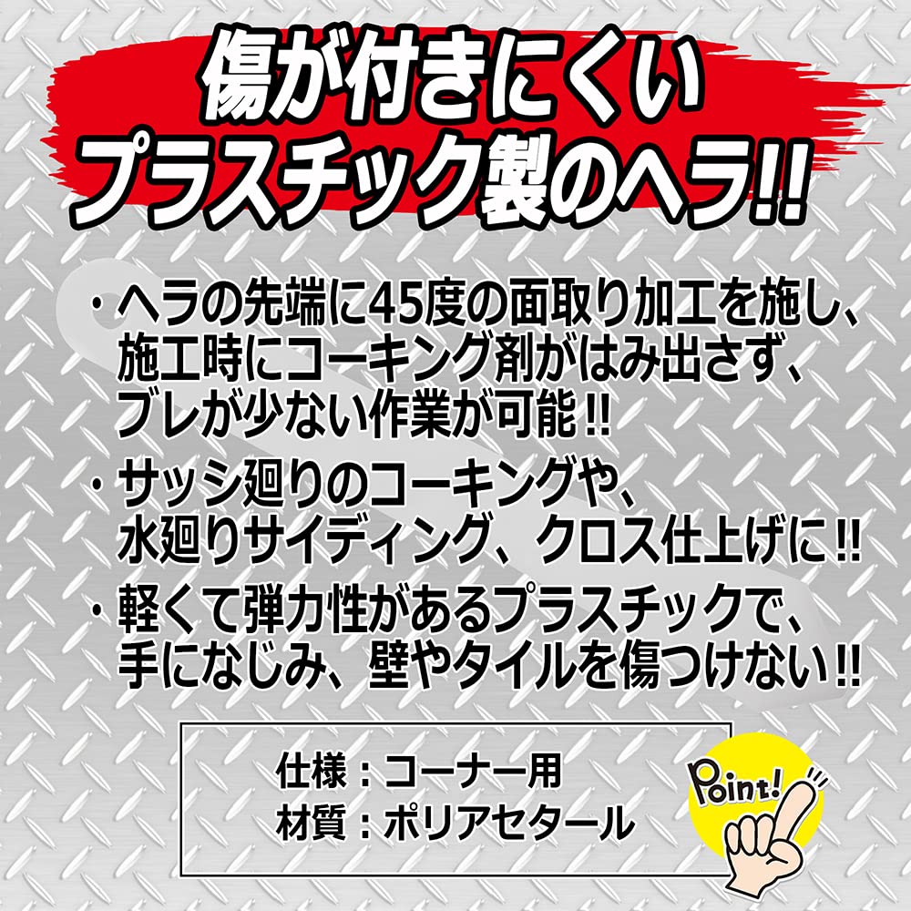 ヘラの先端が45度に面取り加工されているので、施工時にコーキング剤がはみ出さず、ブレが少ない作業が可能