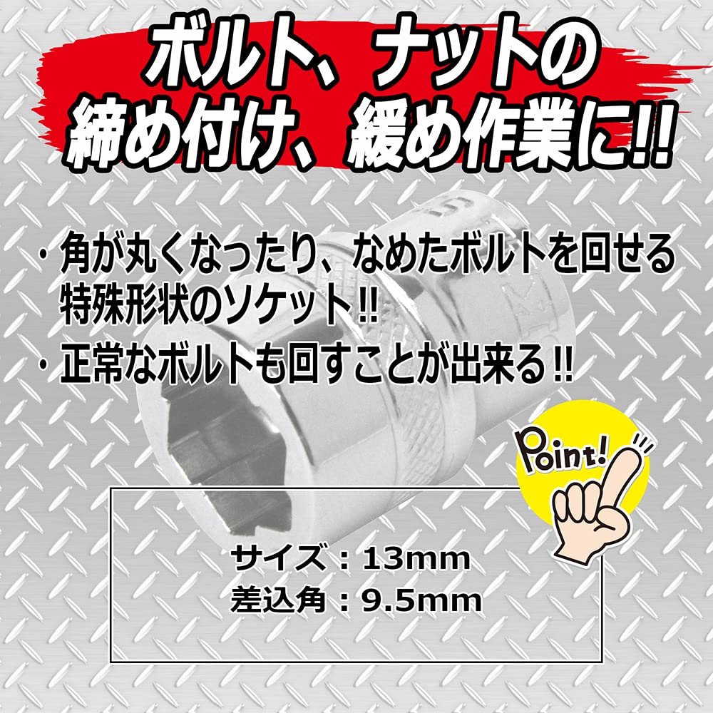 特徴:角が丸くなった、なめたボルトを回せる特殊形状のソケット