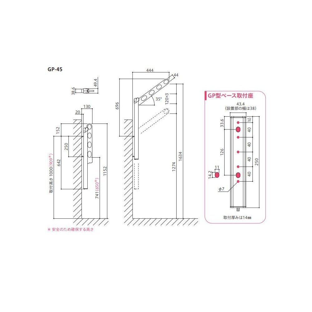 ・腰壁取り付けポール上下式物干