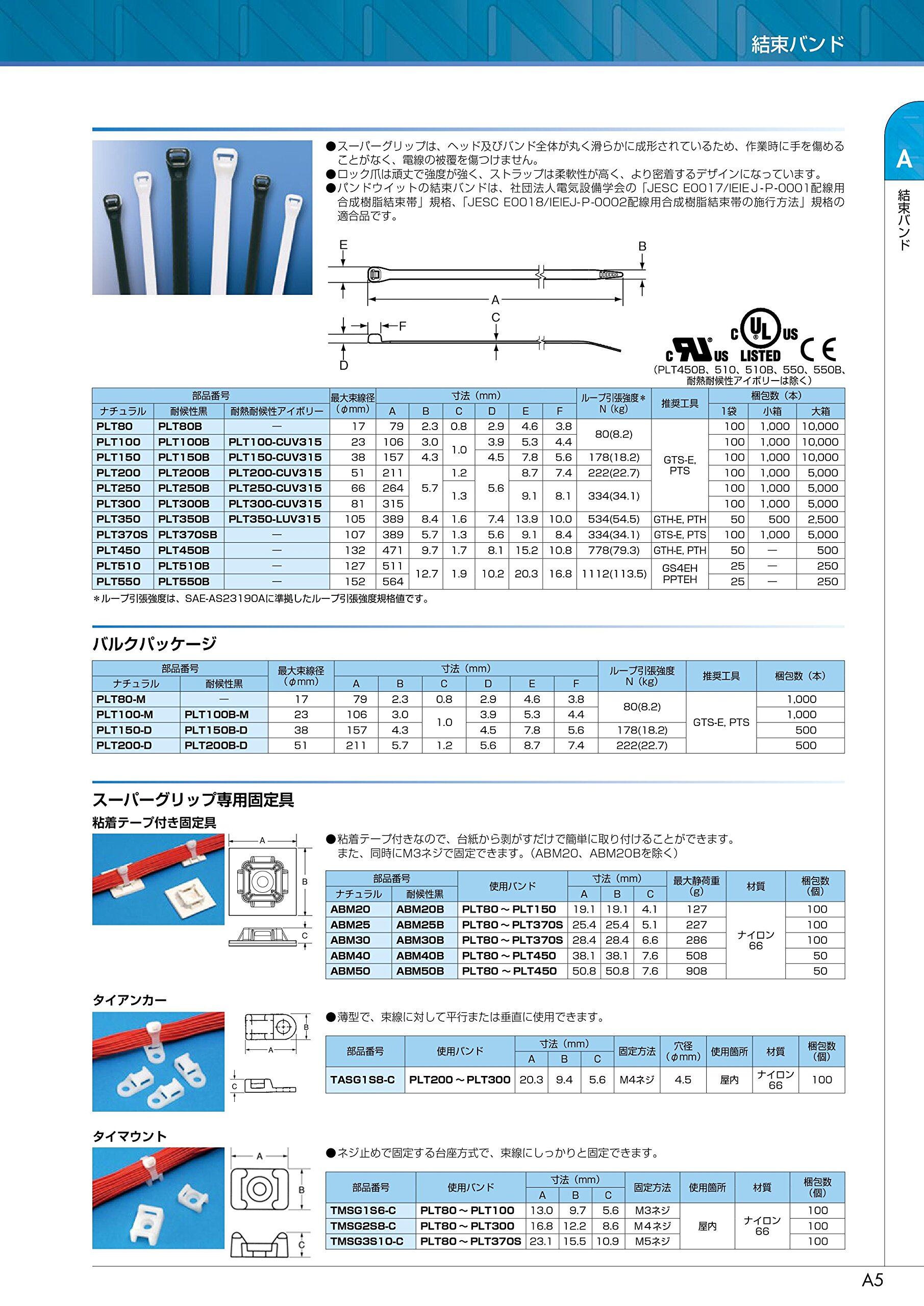 パンドウイット スーパーグリップ 電工用 ナイロン結束バンド 耐候性黒 幅8.4mm 長さ389mm 50本入り PLT350B