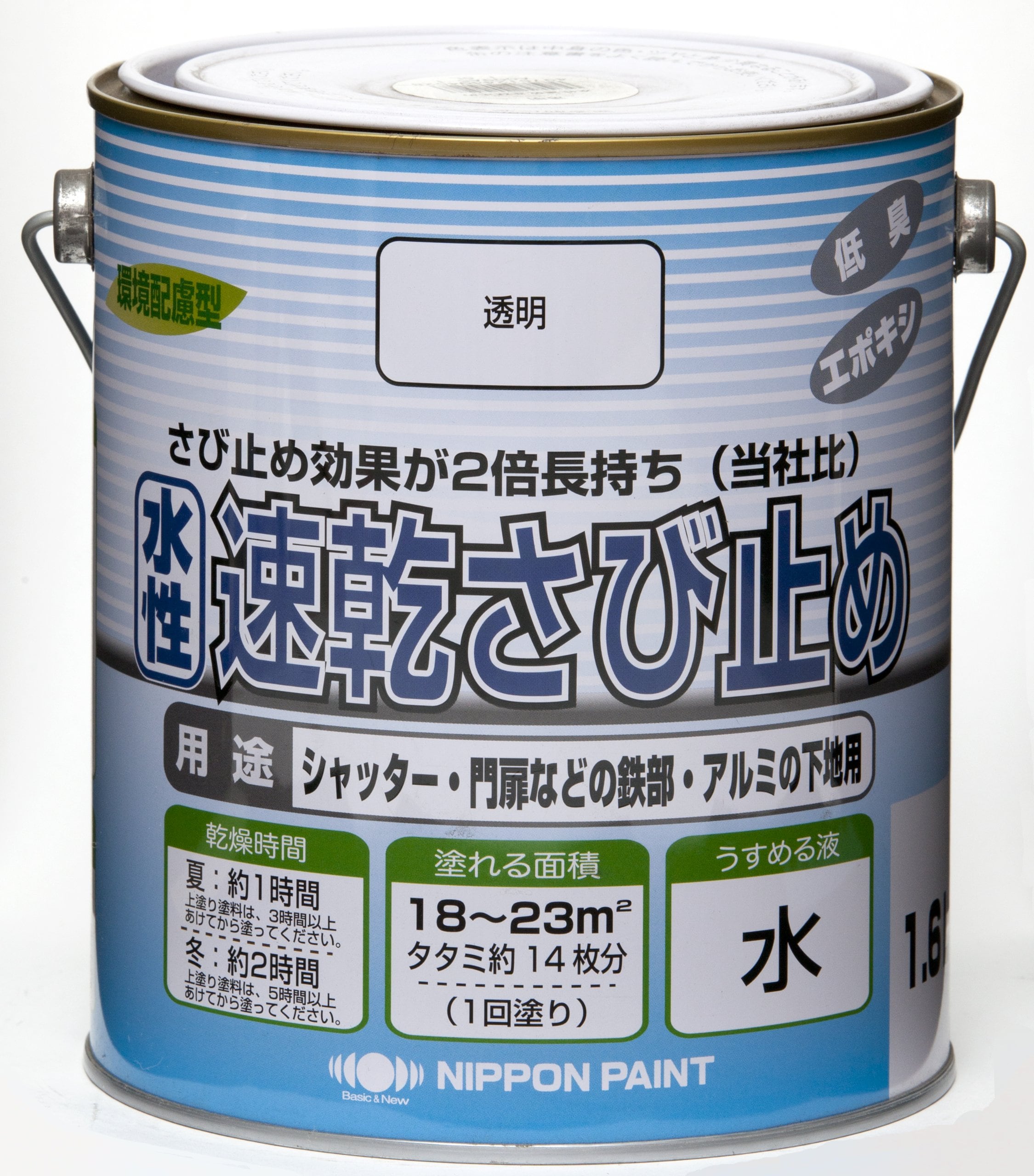 ニッペ ペンキ 塗料 水性速乾さび止め 1.6L 透明 水性 つやなし 屋内外 日本製 4976124404528