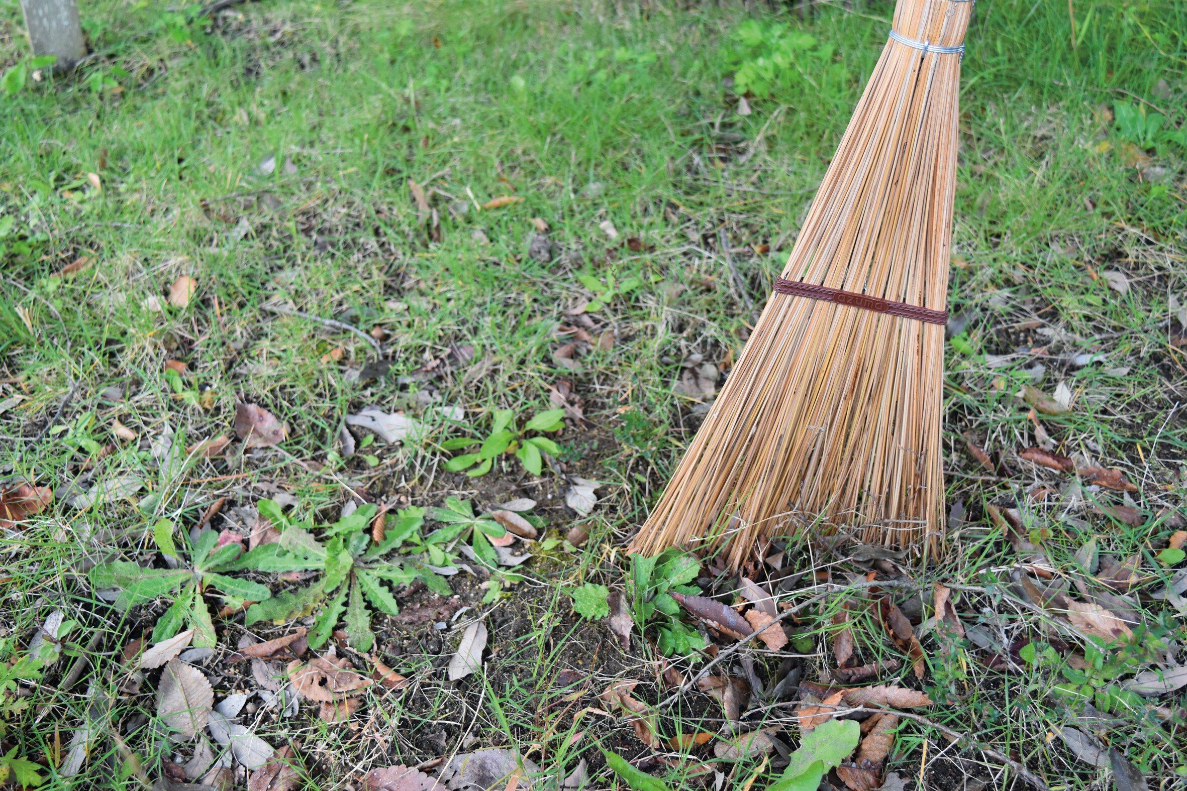 ・ヤシの葉脈から作った、太くて弾力のある穂先で、落ち葉や小石など、大きなゴミをしっかり掃きだす