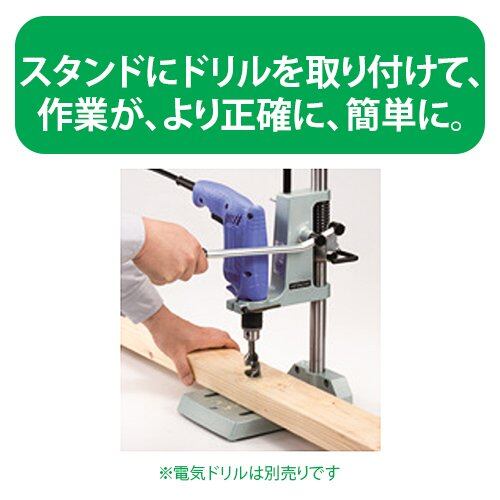 電気ドリルをドリルスタンドに取り付けて木材や金属の穴あけができます。