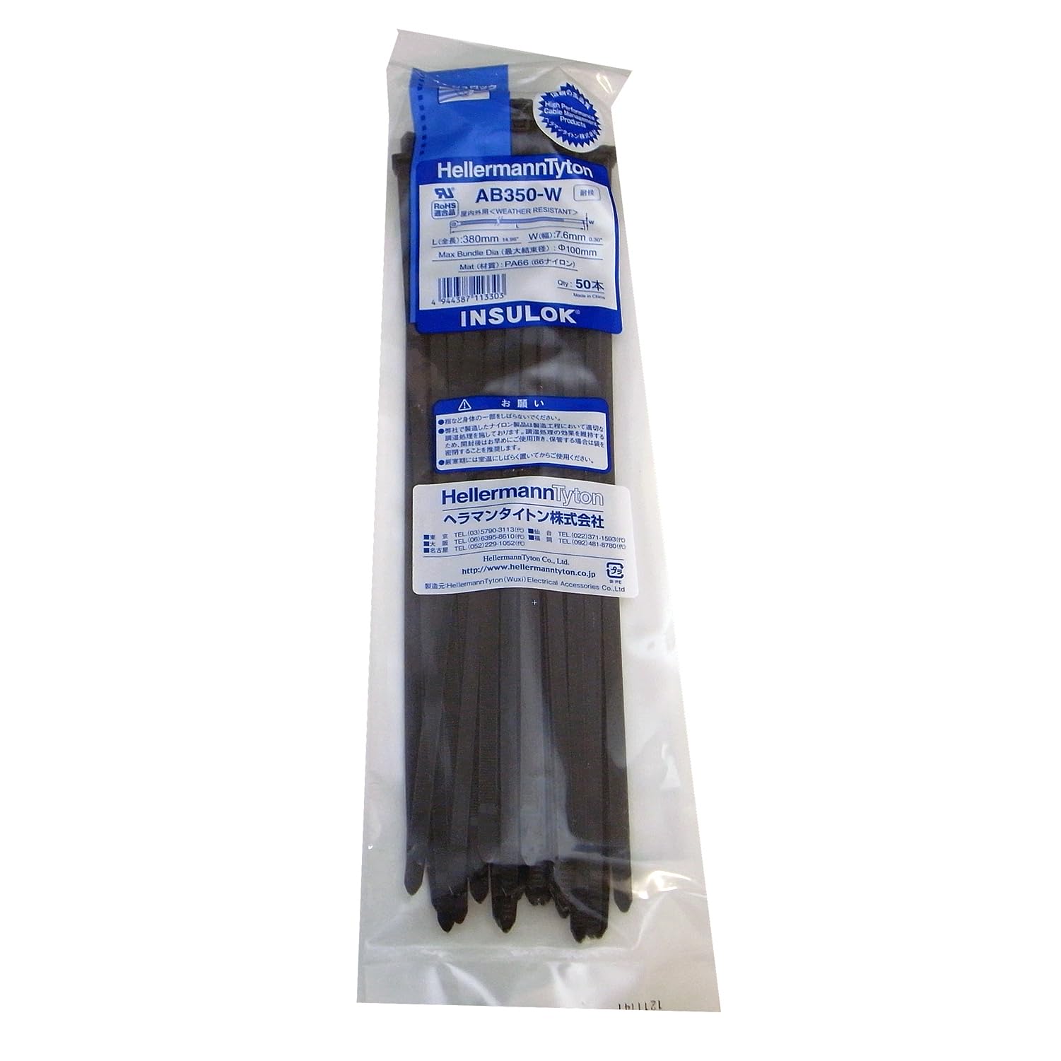 HellermannTyton ヘラマンタイトン 結束バンド インシュロック AB350-W 50本入 耐候・屋内外用グレード 黒