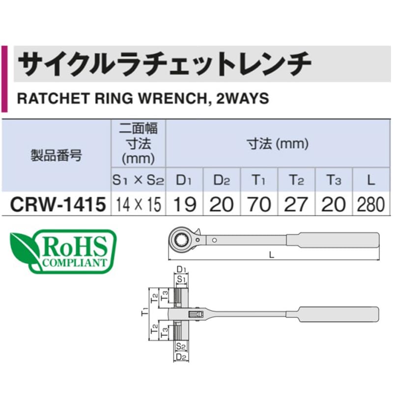 トネ(TONE) サイクルラチェットレンチ CRW-1415 ブラック 二面幅14×15mm