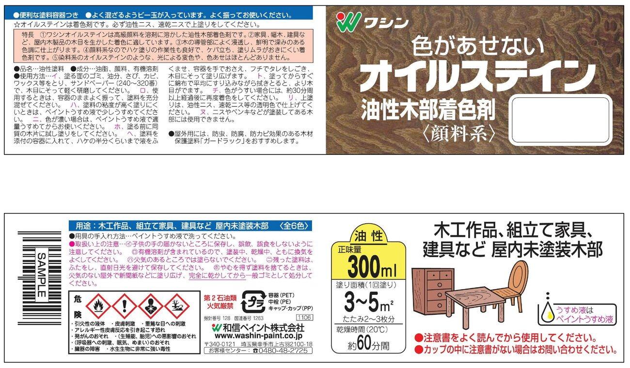 【処分セール】和信ペイント(Washi Paint) 油性オイルステイン むら無く着色・木目鮮明 オールナット 300ml
