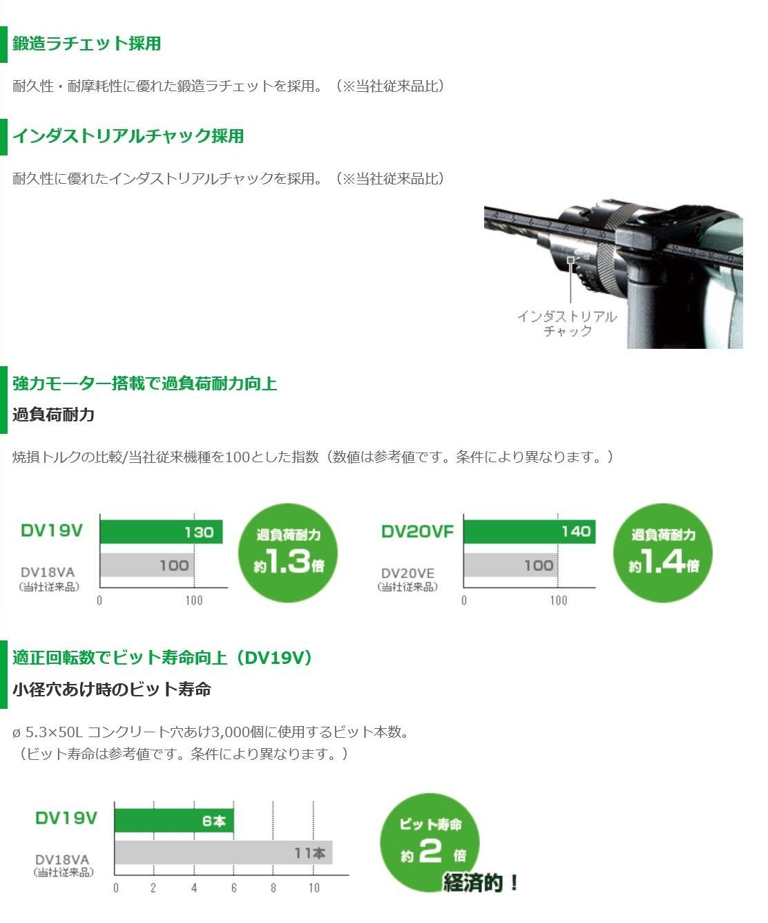 HiKOKI(ハイコーキ) 振動ドリル コンクリート19mm 木工30mm AC100V 710W DV19V