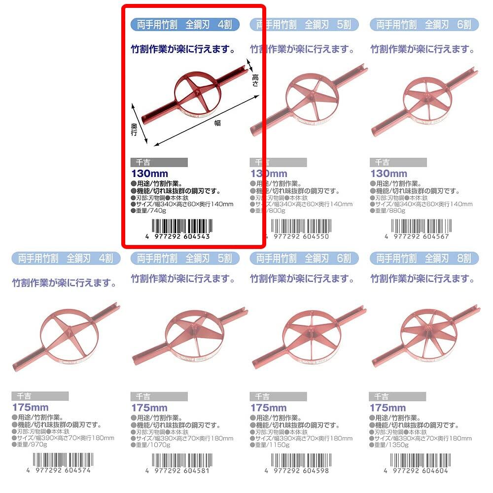千吉 竹割 両手用 全鋼刃 4割 130mm