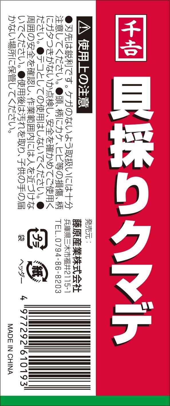 【在庫処分】千吉 貝採りクマデ 潮干狩り用 4本爪 幅77×高さ235×奥行き105mm 130g