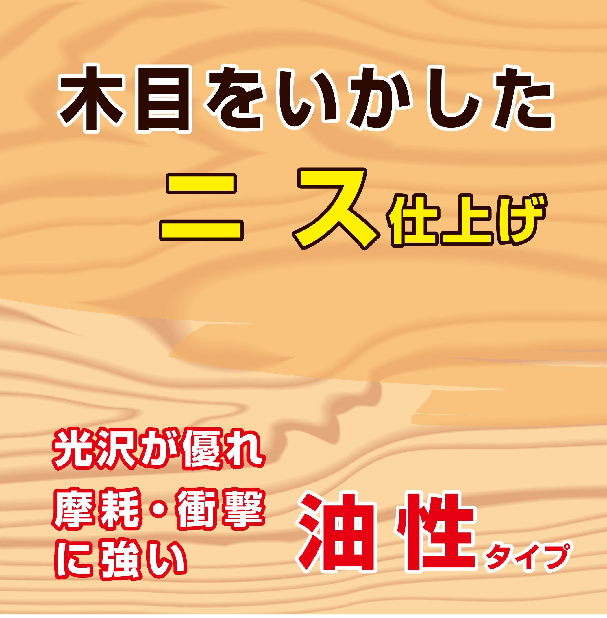 【用途】表示の用途以外には使用しないでください。 ■[屋内の木部・木製品]木の床 / フローリング / 廊下 / 階段 / 木製家具 / 建具 など 【塗れないもの・注意事項】表示の用途以外には使用しないでください。 ■[吸い込まない素材]プリント合板 / デコラ板 など ■[特殊な塗装面]UV塗装 / セラミック塗装 など ■[常に水がかかる所]浴室 など ■[その他]高級家具 など