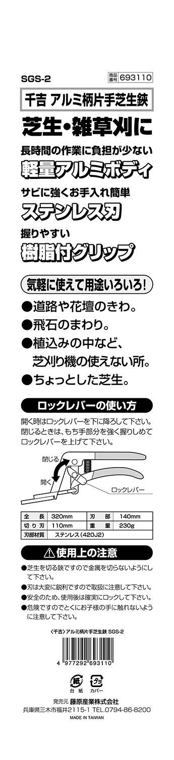 千吉 アルミ柄 片手芝生鋏 全長約320mm SGS-2