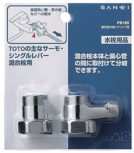 SANEI 混合栓分岐ソケットT用 混合栓から湯・水の分岐 TOTO製サーモ・シングルレバー向け PB18S