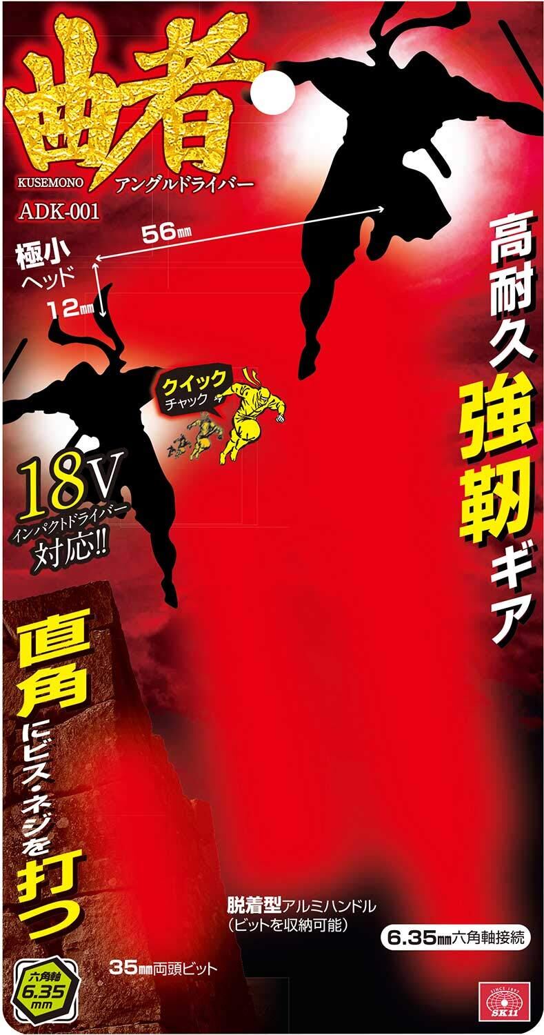SK11(エスケー11) アングルドライバー 曲者 ヘッド56mm 6.35mm六角軸 35mm両頭ビット付 ADK-001