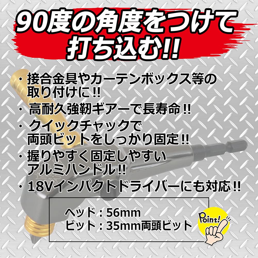 特徴:奥まった所などで、まっすぐにビスやねじが打ち込めない時に90度の角度をつけて打ち込むことができる