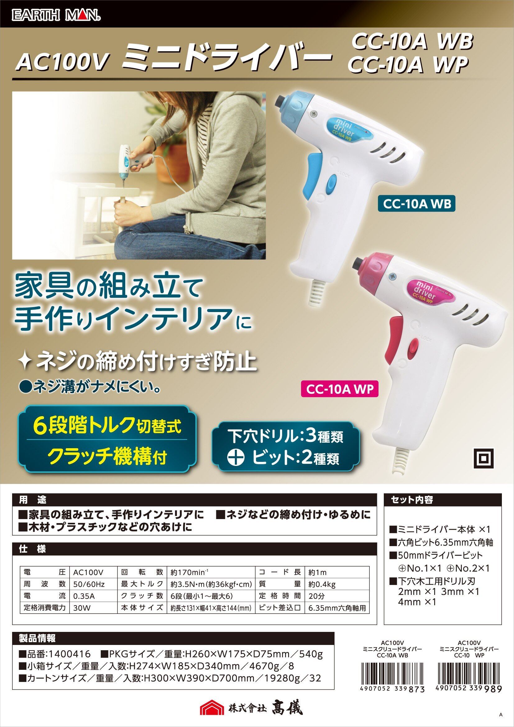 高儀(Takagi) EARTH MAN AC100V ミニドライバー ホワイトブルー CC-10AWB