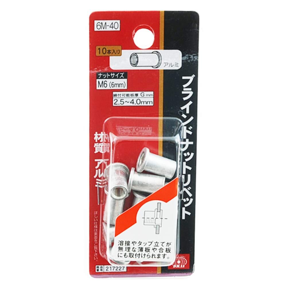 【数量限定】SK11(エスケー11) ブラインドナットリベット ΦM6×1.0 締付可能板厚2.5~4.0mm 10本入 6M-40