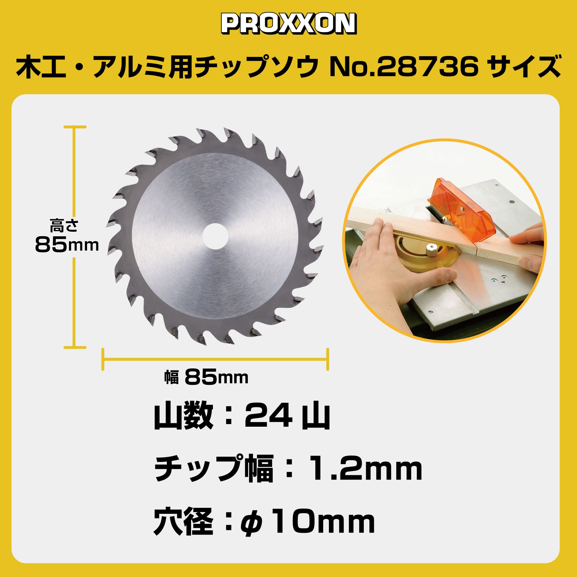 プロクソン(PROXXON) 木工・アルミ用チップソウ85mm 1枚 【24山 チップアサリ幅1.2mm】 No.28736