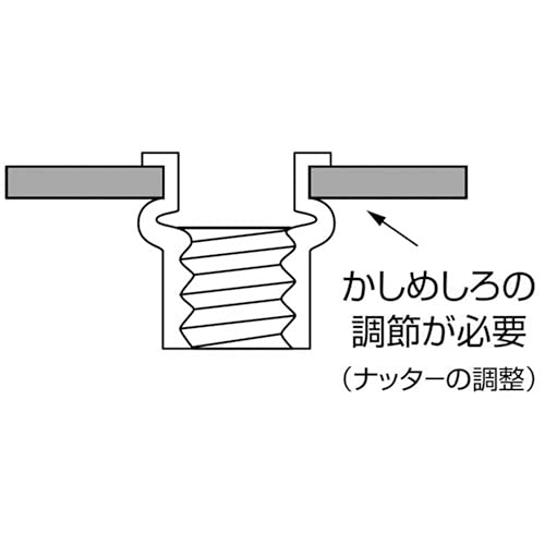 専用のエビ印ナッターを使用すれば、カシメ板厚に応じた適切なストローク調整ができ、均一な仕上がりとなります。