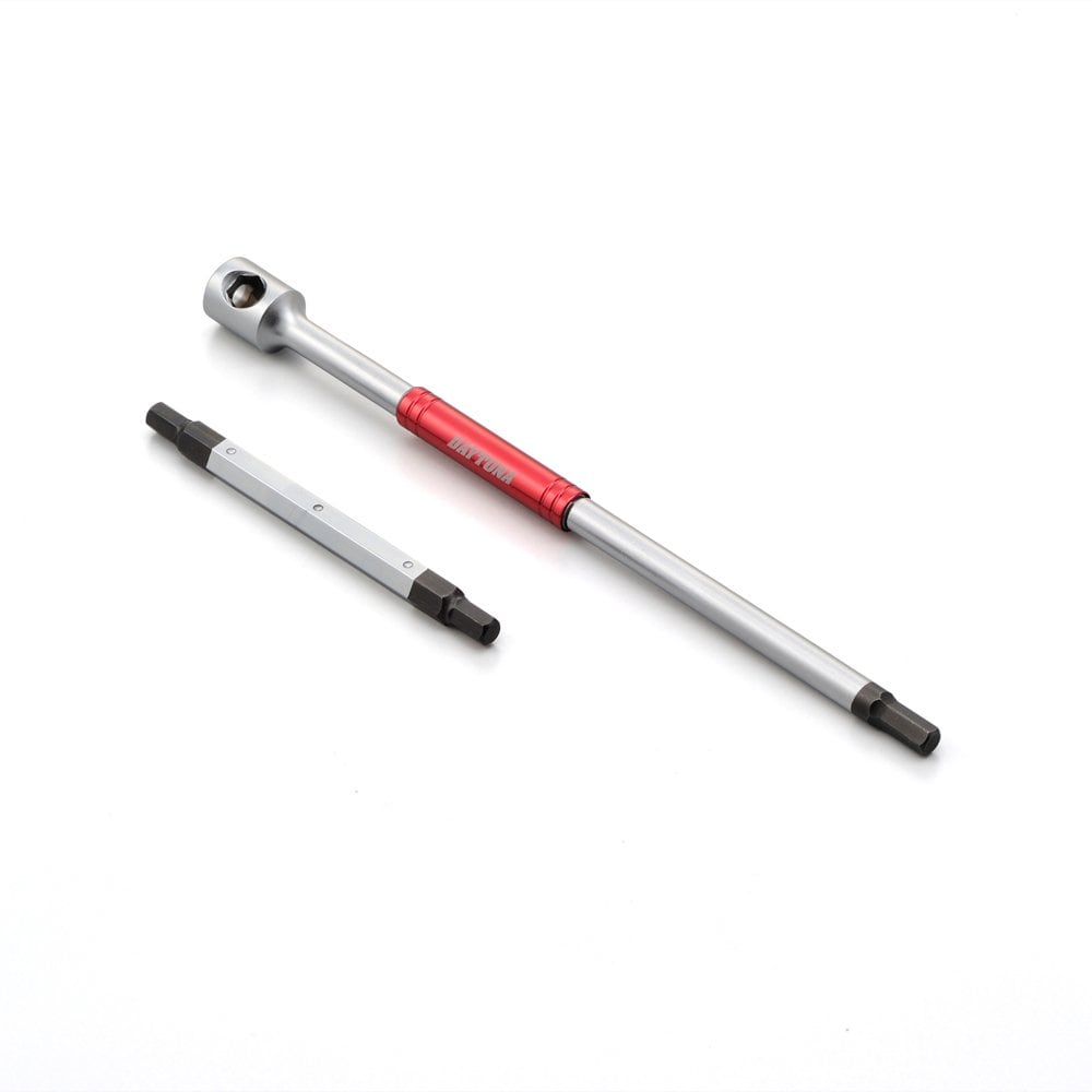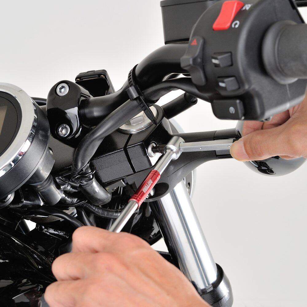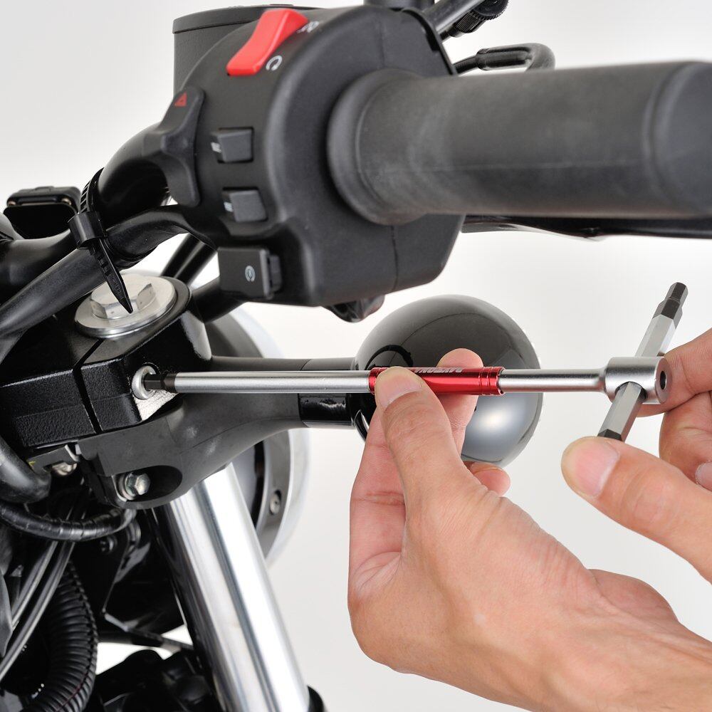 ハンドル部が脱着可能なのでL型レンチに変形したり、作業終了時はコンパクトに収納することが可能です。レンチ部にグリップを装着することで、クイックな作業ができます。