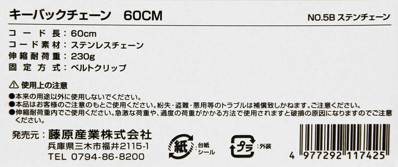 SK11(エスケー11) KEY-BAK キーバックチェーン 60cm ステンチェーン No.5B