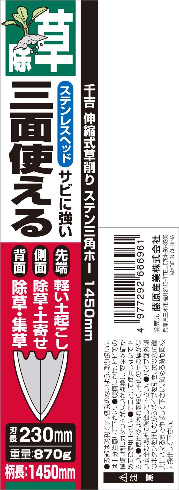 千吉 伸縮式草削り ステン三角ホー 1450mm 4段階伸縮