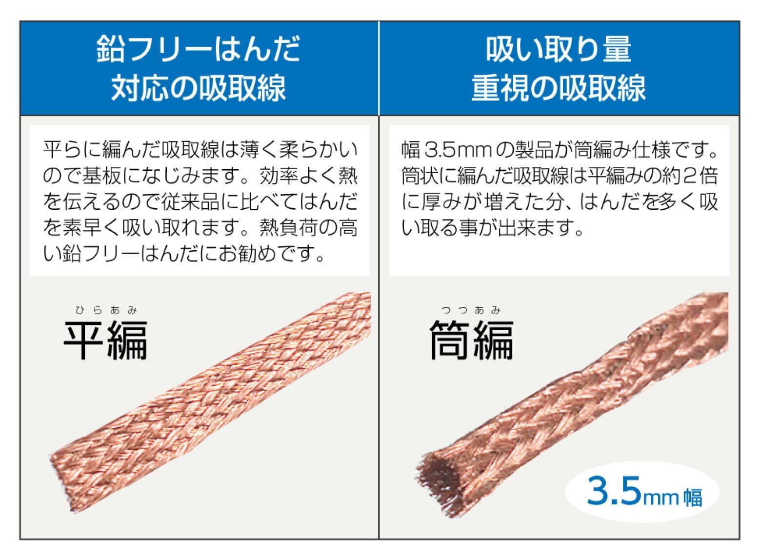 吸取線は薄く柔らかいので基板になじみ、効率よく熱を伝える