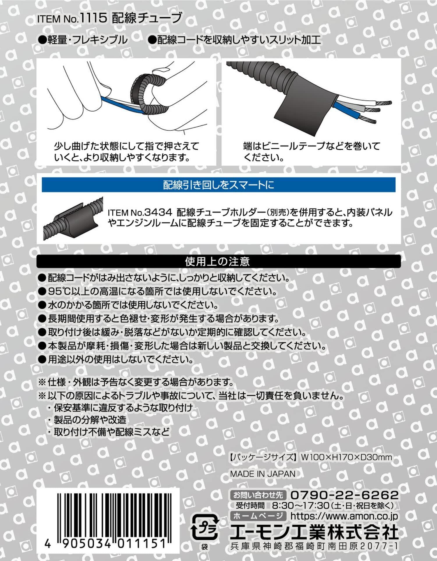 エーモン(amon) 配線チューブ コルゲートチューブ 5φ 2m (ケーブル保護 コード カバー スリット入) 1115