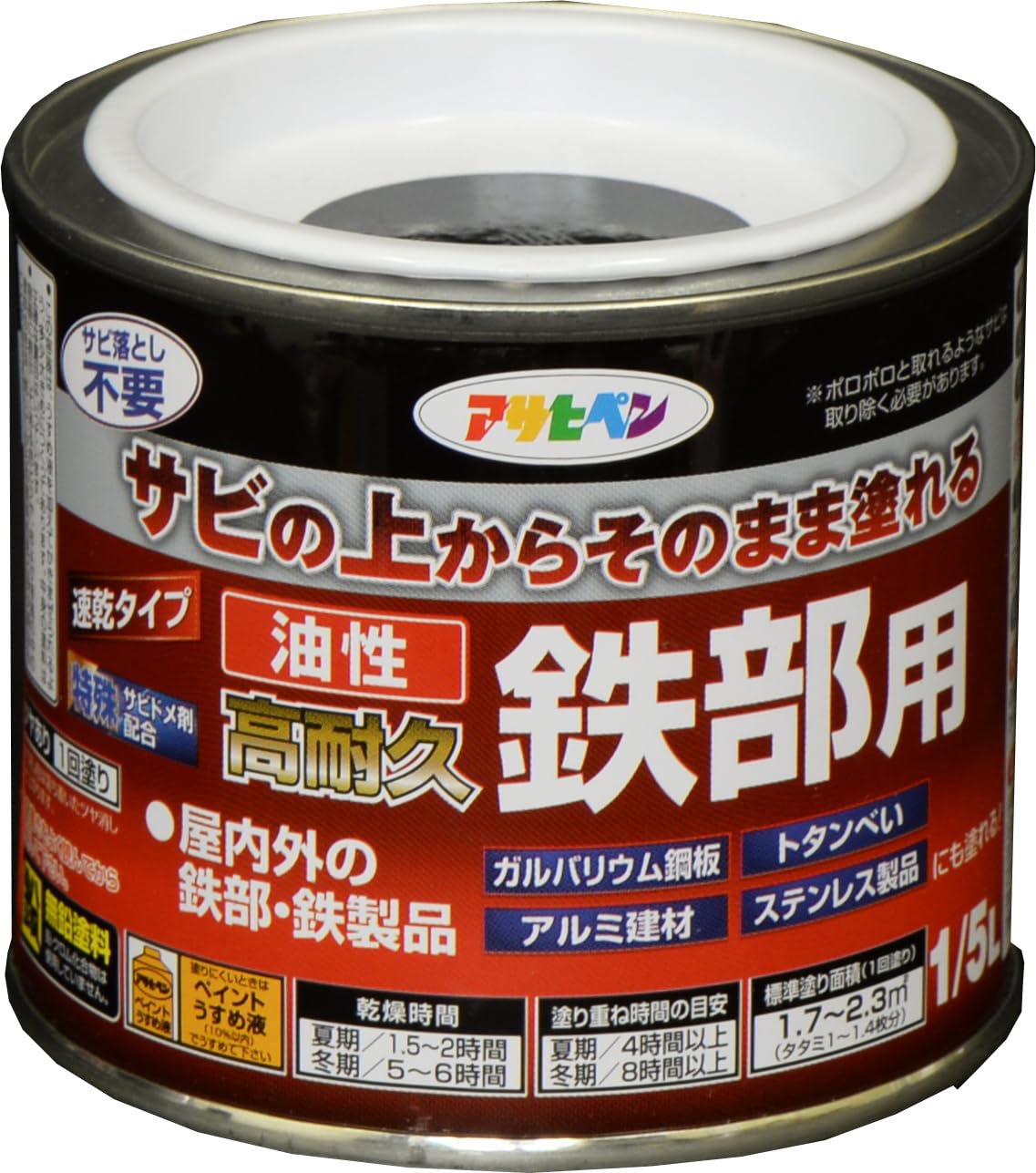 アサヒペン 塗料 ペンキ 油性高耐久鉄部用 1/5L 黒 油性 サビの上からそのまま塗れる ツヤあり 1回塗り 高密着性 耐候性 日本製