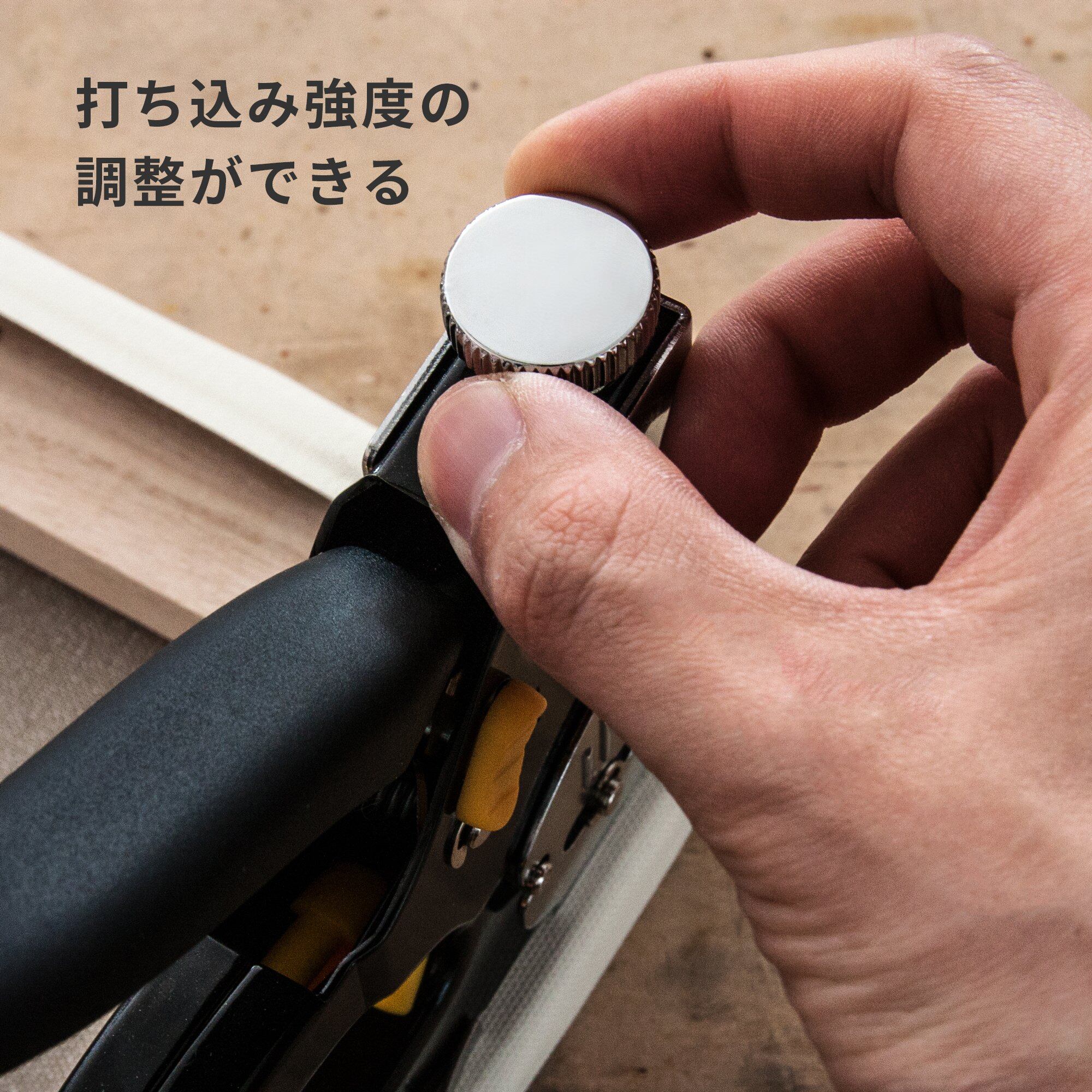 針の打ち込み強さの調整ツマミ付き。