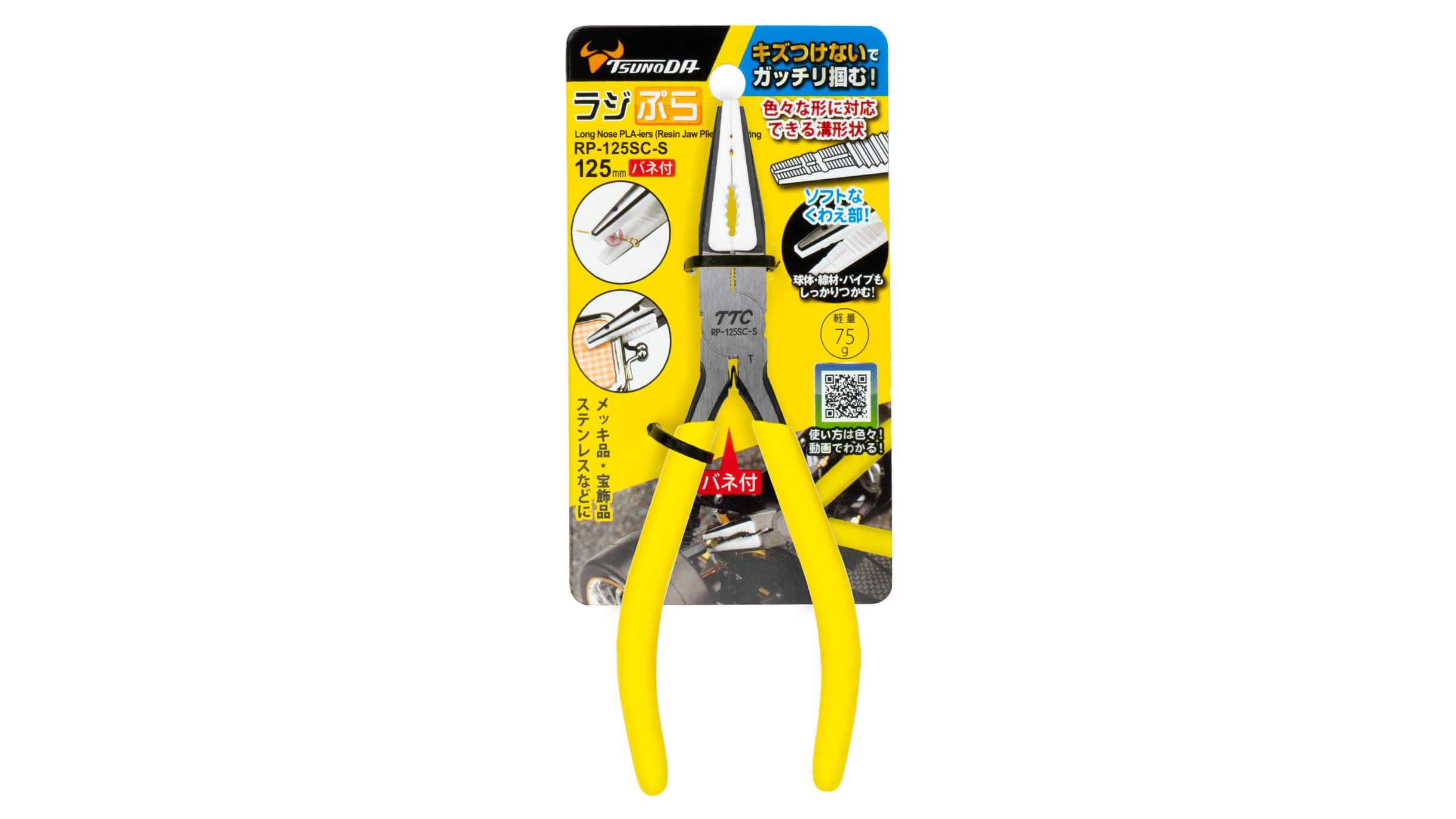 ツノダ(TSUNODA) TTC ラジぷら 125mm バネ付 RP-125SC-S 樹脂付き 傷つかないペンチ