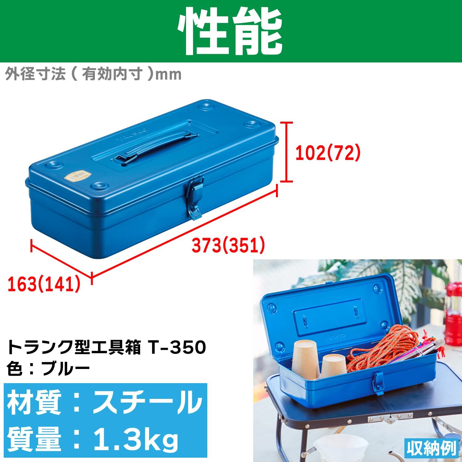 TRUSCO(トラスコ) トランク型工具箱 373X163X102 ブルー T-350