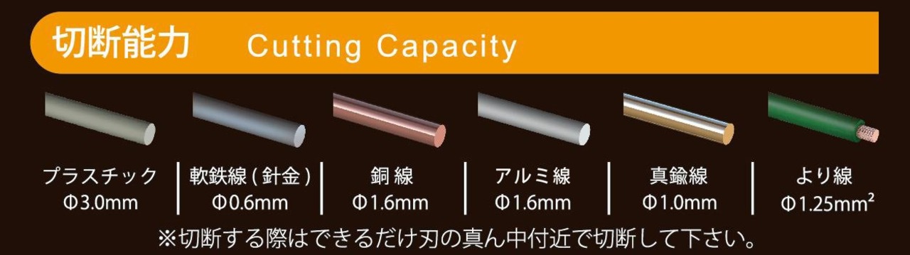 切断能力:銅線/直径1.6mm、より線/1.25mm2