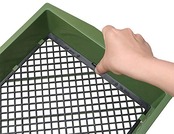 目の大きさをワンタッチで変更できる樹脂製のふるいです。