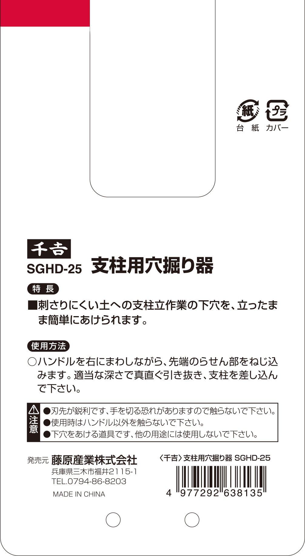 【限定特価】千吉 穴掘り機 支柱用 25mm SGHD-25