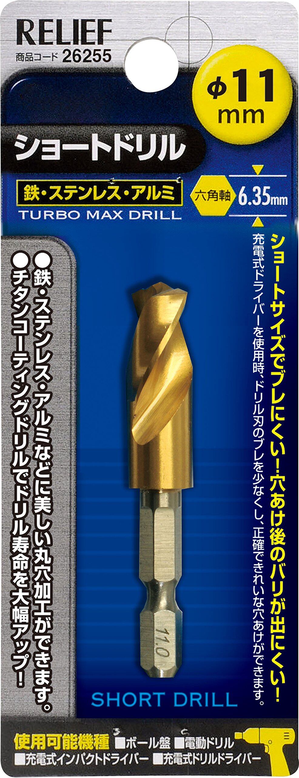 イチネンアクセス RELIEF(リリーフ) 鉄工ドリル 六角軸ショートドリル 11.0mm 26255 鉄工用 チタンコーティング