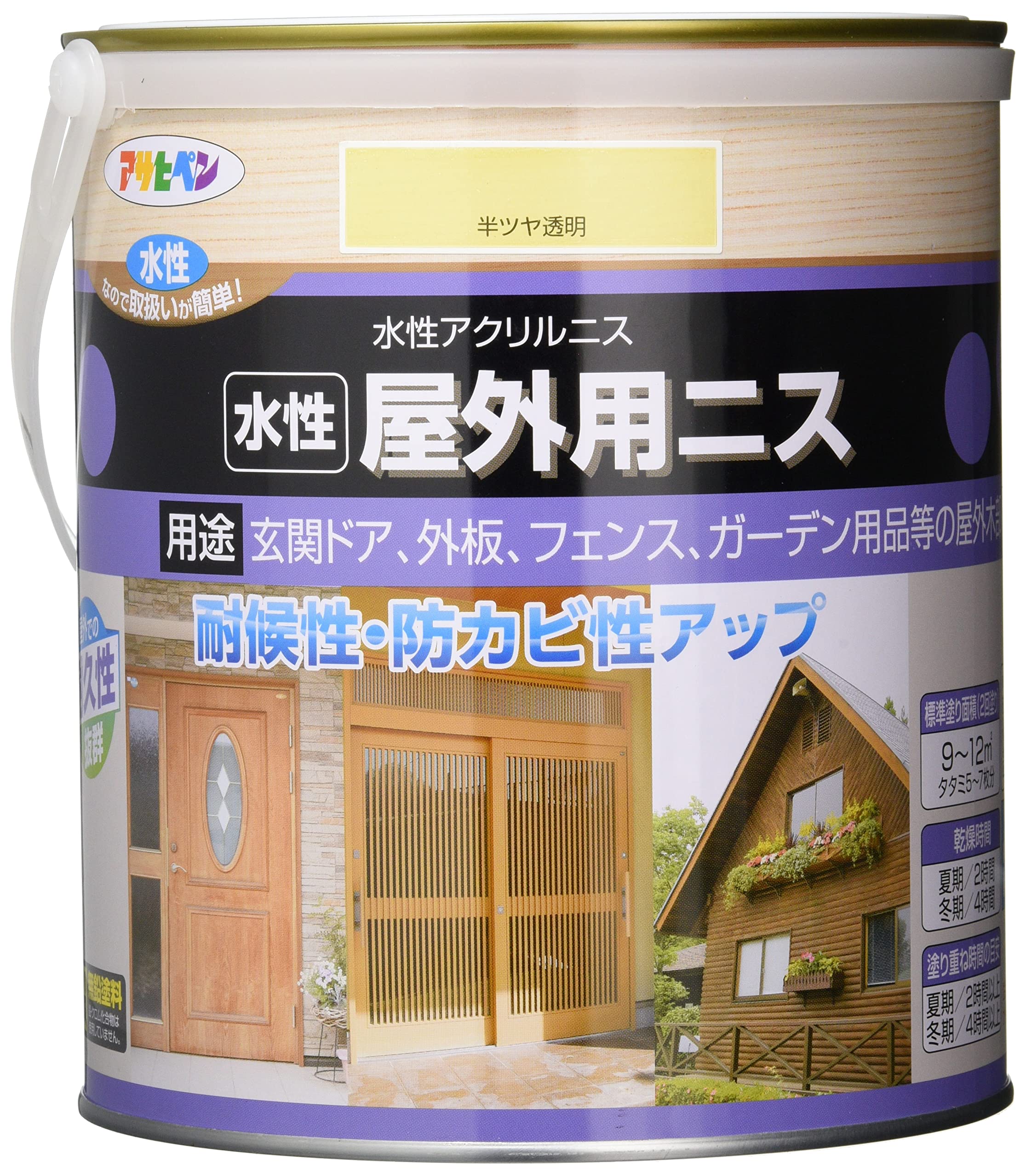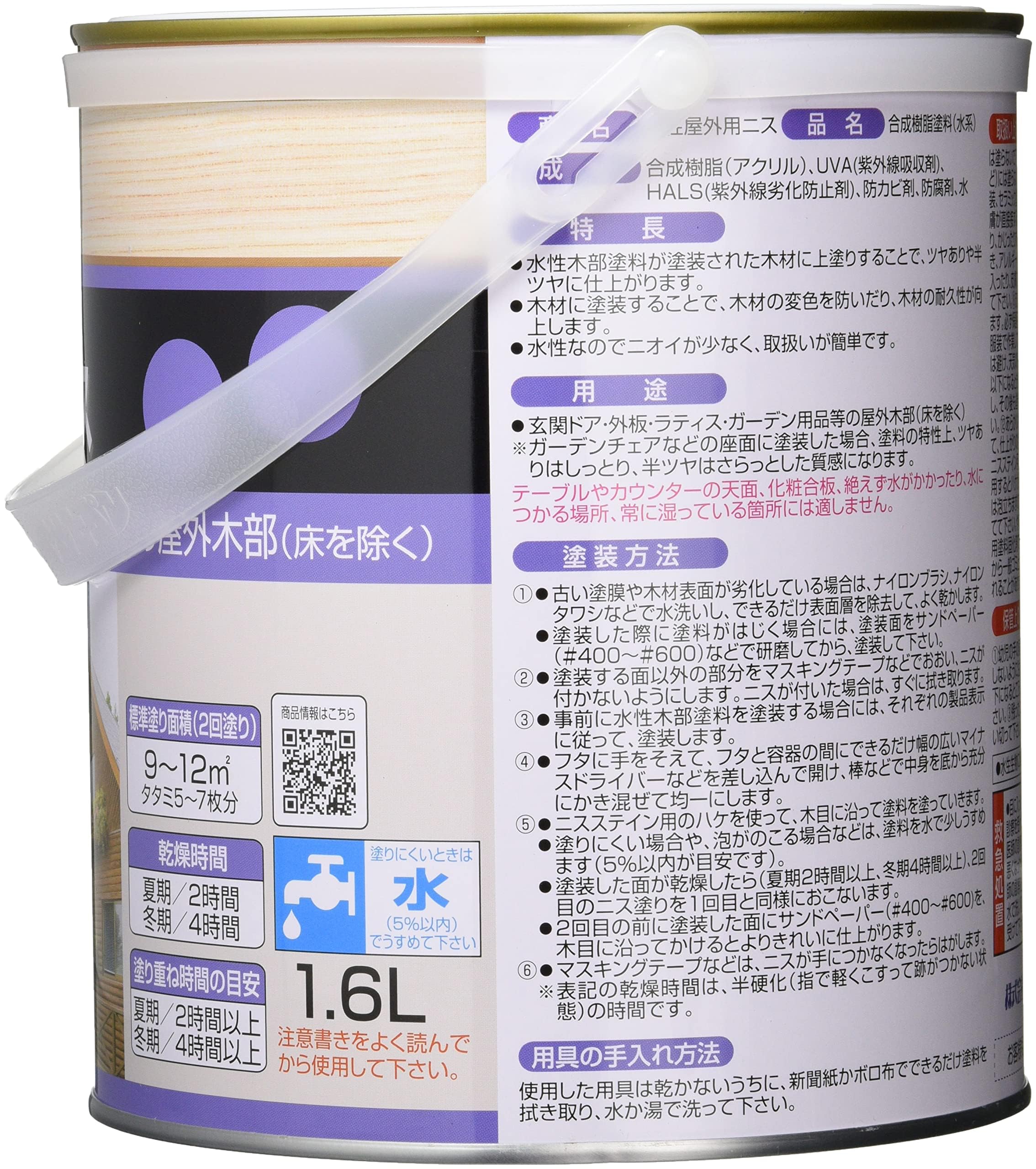 アサヒペン 塗料 ペンキ 水性屋外用ニス 1.6L 半ツヤ透明 水性 ニス 低臭 屋外用 耐候性 防カビ性 日本製